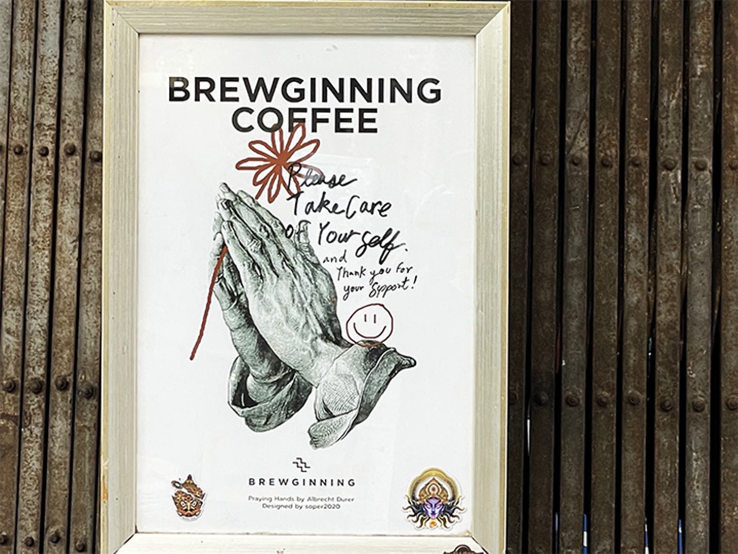“Brewginning” opens at 7 AM, outside on a street corner with a whicker store across. Undoubtedly the best coffee in Chiang Mai. Even though the street has a nondescript industrial feel, right around the corner we encounter a rather magical flying elephant. If there’s beauty to be found in this fairly polluted city, it’s in these unexpected surreal, sometimes even kitschy, images we encounter randomly.